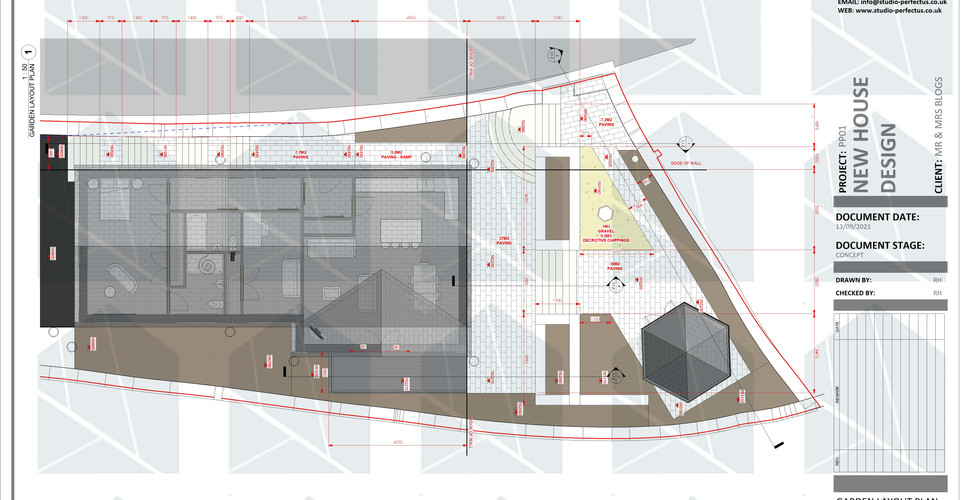 Landscape design drawings will include drawings for the hard-landscaping elements, such as the paving, decking and any structural elements. A set of detailed construction drawings will also be produced to ensure all of the proposed elements are constructed in line with the initial design intent.